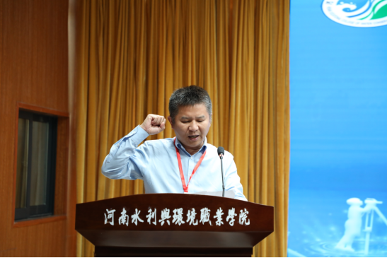 裁判员代表中国矿业大学(北京)袁德宝教授、参赛选手代表我校土木工程系学生穆俊龙依次上台宣誓,表示要严格遵守赛项规则,公平公正执裁和竞赛。赛项技术支持企业广州南方测绘科技股份有限公司郑州分公司总经理王小刚表示,将尽最大努力为大赛提供技术支持和服务,确保大赛顺利进行。总裁判长翟翊宣布大赛开幕。