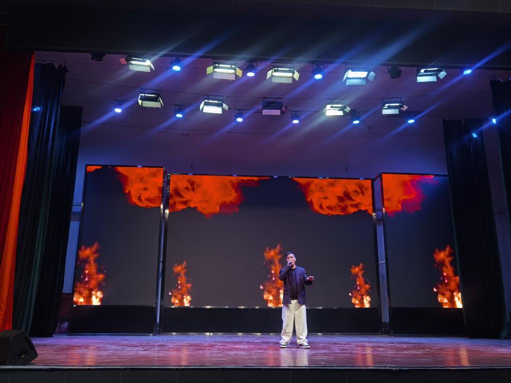 本次演出内容丰富,形式多样,由诗朗诵、话剧、歌曲等多种表演艺术组成,演出水平高,艺术感染力强,思想性好,得到了现场师生的一致好评,掌声、欢呼声不断。在诗朗诵中,开篇节目《我光荣的名字,河南人》,诉说了河南光荣的历史岁月、深厚的历史文化和浓郁的人文底蕴,朗诵者深情款款而又大方豪迈地展示出河南人的骄傲与自信。朗诵《一束花开》声音感人、情绪饱满,赞美了铮铮铁骨的红梅精神,完美诠释了江姐作为孩子、妻子、母亲时的喜怒哀乐和作为女英雄时的坚毅、勇敢和不屈,使人听来潸然泪下。《祖国啊,我亲爱的祖国》掷地有声、抑扬顿挫,时而低沉激昂、时而轻柔绵长,是对我们伟大祖国的最深情告白。