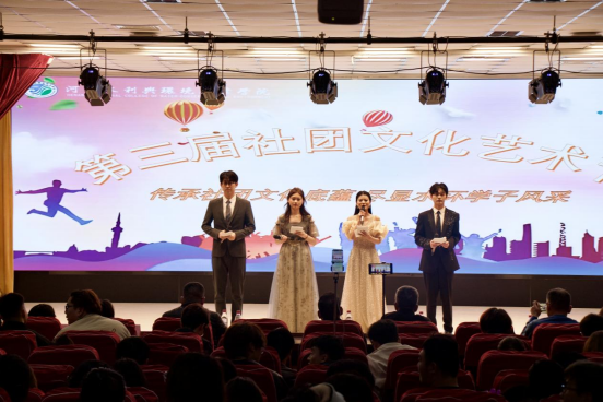 56个学生社团、数十个节目、数百名学生表演节目。3月26日晚,我校第三届大学生社团文化艺术节开幕式分别在花园路校区和航空港校区成功举办。活动主题为“传承社团文化底蕴,尽显水环学子风采”。校纪委书记张志淮,党委学生工作部、团委、航空港校区管委会、水利工程系、土木工程系、经济管理系、信息工程系、机电工程系、环境工程系等部门有关负责同志、团学干部和56个学生社团参加开幕式。