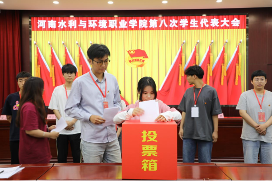 李广慧代表学校党委对第八次学生代表大会的召开表示祝贺。他指出,2023年,我校学生会组织团结带领广大青年学子,围绕学校中心工作,主动贴近同学、服务同学,在思想引领、校园文化建设、科技创新、社会实践、志愿者服务等方面取得了骄人成绩,在促进学校建设和发展、保障学生合法权益、充分发挥学生主人翁精神等方面做出了积极贡献,展现了水环青年的精神风貌与责任担当,我校学生会被选举为河南省学生联合会第十一届委员团体。他强调,2024年,学校将积极对接河南省“7+28+N”产业链群发展需求,完善10个专业群人才培养方案,深化产教融合、科教融汇,建立完备的校企合作、产教融合管理体系。将创新学生教育管理办法,培育优秀宿舍文化、班级文化,不断提高学生文明修养,推进航空港校区“一站式”学生社区、大学生心理健康中心建设,完善“一站式”服务大厅建设,满足同学们在校学习生活需要。他要求,新一届学生会要坚定理想信念,勇于担当使命,把握青春航向,感悟思想伟力,汲取奋进力量。要锤炼过硬本领、提高素养,勇攀知识技能高峰,在实践历练中积累经验、锤炼能力,以过硬本领展现作为,不负青春。要践行服务宗旨、认真履职,发挥桥梁纽带功能,帮助同学们解决日常学习和生活中最关心、最直接、最现实的问题。