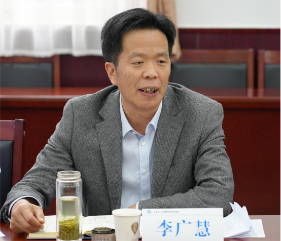 李广慧指出,马克思主义学院是培养担当民族复兴大任的时代新人、培养中国特色社会主义事业合格建设者和可靠接班人的主要阵地,要站在讲政治的高度旗帜鲜明地把马克思主义学院建设好,摆在重要位置,作为重点学院来建设。马克思主义学院要围绕“培养什么人、怎样培养人、为谁培养人”这个根本问题,充分发挥好思政课教师队伍作用,为党育人,为国育才;要加强马克思主义理论研究和阐释,在组建理论研究团队、形成研究型教学模式等方面下功夫,在实践中不断推进新时代思政课建设,促使党的创新理论入脑入心;要与时俱进,培优创新,积极适应“数字化”时代变革,赋能思政课教学方式方法改革,努力打造思政“金课”;要加强思政课教师队伍建设,鼓励思政课教师通过挂职锻炼、考察交流等方式提升能力水平。思政课教师要坚持政治要强、情怀要深、思维要新、视野要广、自律要严、人格要正“六要”标准,不断提升马克思主义理论素养、学术造诣和育人能力,严以修身,知行合一,成为学生心目中的良师益友。