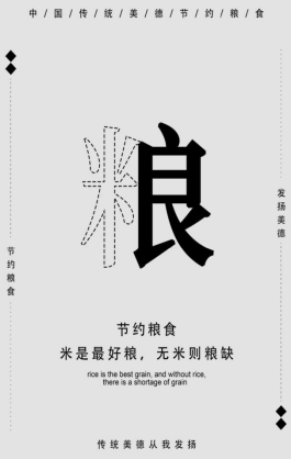 “节约粮食”主题中,有的作品通过“粮”字的偏旁切入,倡导大家在日常生活中节约粮食、弘扬中华民族的传统美德;有的作品通过一日三餐的温馨画面,号召身边的同学爱惜粮食,以实际行动践行“光盘行动”。