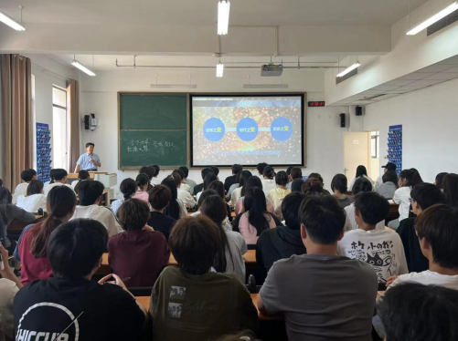 5月27日,校党委书记李广慧走进“形势与政策”课堂,为经济管理系2023级跨境电子商务3班、4班学生讲授思政课。