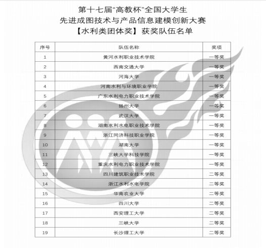 7月26日至29日,第十七届“高教杯”全国大学生先进成图技术与产品信息建模创新大赛总决赛在贵州大学成功举办,来自全国的895所高校、12694名选手参加了大赛。我校水利工程系参赛团队喜获水利类团体一等奖,总成绩在全国参赛高校中排名第四,在参赛高职院校中排名第二。